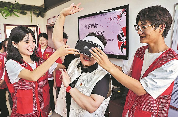 日前,河北科技師范學院數(shù)學與信息科技學院聯(lián)合秦皇島市海港區(qū)鐵路里社區(qū),開展“智享銀齡 對話國粹”銀齡課堂活動?;顒又?,大學生黨員志愿者走進社區(qū),將VR技術與京劇文化相融合,現(xiàn)場講解VR設備的使用方法,帶領居民們借助VR設備“零距離”感受京劇魅力。通過VR設備,大家不僅能清晰欣賞戲服紋樣的精細,還能沉浸式體驗演出氛圍,為傳統(tǒng)文化的傳承與普及注入新的科技活力。