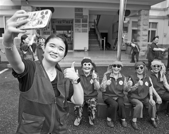 近日,在浙江省湖州市長興縣水口鄉(xiāng)水口村居家養(yǎng)老服務(wù)中心,志愿者和老人一起玩變裝游戲。近年來, 長興縣不斷滿足廣大老年人的養(yǎng)老服務(wù)需求,建起“老省心綜合體”,讓老年人老有所養(yǎng)、老有所學(xué)、老有所樂。 視覺中國 供圖