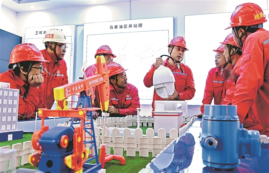 為推進(jìn)油氣集輸站場信息化升級,中國石化中原油田地面工程搶維修中心文衛(wèi)第二采油服務(wù)項目部班組職工反復(fù)測試校準(zhǔn)參數(shù),有效解決設(shè)備適配難題。圖為10月14日項目部班組職工在創(chuàng)新工作室拆解室外監(jiān)控球機(jī)設(shè)備尋找癥結(jié)。