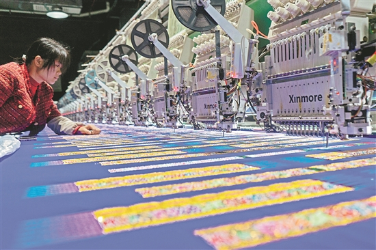 10月21日,在貴州省從江縣貫洞鎮(zhèn)美娥社區(qū)一家苗族刺繡企業(yè)生產(chǎn)車間,繡娘在用數(shù)控機床生產(chǎn)刺繡產(chǎn)品。近年來,從江縣積極推動非遺技藝與現(xiàn)代產(chǎn)業(yè)深度融合,通過“非遺企業(yè)+傳承人+繡娘”模式,大力培育集苗繡非遺特色文創(chuàng)產(chǎn)業(yè),推動傳統(tǒng)苗繡與現(xiàn)代文創(chuàng)元素融合發(fā)展,讓古老非遺煥發(fā)生機,助力鄉(xiāng)村振興。本報通訊員 吳德軍 攝