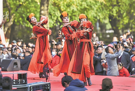 日前,“打起手鼓唱起歌”首屆中國新疆民間藝術(shù)季優(yōu)秀節(jié)目巡演沙依巴克區(qū)站演出在烏魯木齊市人民公園舉行。該活動將連演4天,在烏魯木齊市公園、景區(qū)、商業(yè)街區(qū)等區(qū)域進行。劉新 攝/中新社