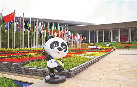 繽紛花卉勾勒出彩色祥云,花團錦簇中,吉祥物“進寶”憨態(tài)可掬,廣場兩側(cè)彩旗飄揚,展現(xiàn)出以開放胸襟擁抱世界的姿態(tài)……今天,煥然一新的“四葉草”整裝相迎,等候八方來客。