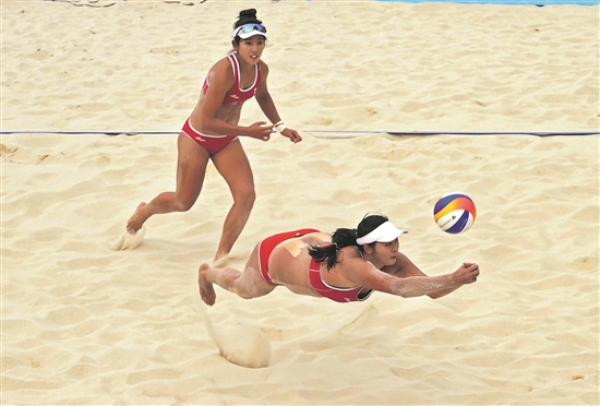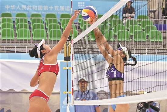 11月3日,在香港舉行的第十五屆全國(guó)運(yùn)動(dòng)會(huì)沙灘排球女子小組賽D組比賽中,浙江隊(duì)組合王凡/姚欣2比1戰(zhàn)勝重慶隊(duì)組合顏云肖/高月云。本屆全運(yùn)會(huì)沙排賽事于10月31日開(kāi)賽,將持續(xù)至11月10日,產(chǎn)生男子組、女子組兩枚金牌,共有52支隊(duì)伍、104名運(yùn)動(dòng)員參賽。