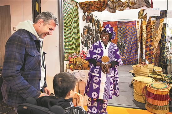 近日,“柏林巴扎”國際工藝展開幕,來自世界各地的約500家制造和零售商參展。本屆展會將持續(xù)至11月9日。圖為近日人們在德國柏林舉辦的“柏林巴扎”上和加納展商交流。
