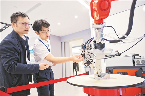 有“中國光谷”之稱的武漢東湖新技術(shù)開發(fā)區(qū),是國家自主創(chuàng)新示范區(qū)。近年來,該開發(fā)區(qū)聚焦高水平科技自立自強(qiáng),推動“中國光谷”邁向“世界光谷”。圖為11月6日,在武漢產(chǎn)業(yè)創(chuàng)新發(fā)展研究院,工作人員展示增材制造機(jī)器人。新華社記者 伍志尊 攝