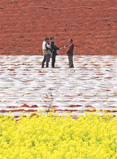 3月11日,云南省曲靖市陸良縣融媒體中心記者在召夸鎮(zhèn)春耕現(xiàn)場(chǎng)采訪農(nóng)戶(hù)。王勇 攝