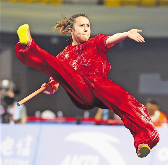 11月8日,天津隊(duì)選手陳艷茹在女子南棍比賽中。本報(bào)記者 王偉偉 攝