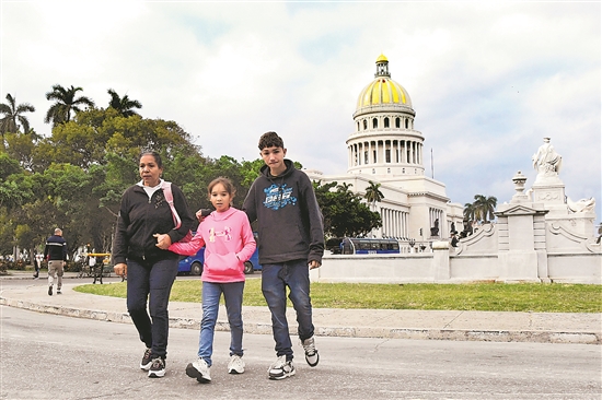 古巴氣象研究所近日通報,古巴西部馬坦薩斯省一處氣象站記錄到0攝氏度氣溫。這是古巴有記錄以來氣溫首次達到冰點,打破了1996年2月0.6攝氏度的全國最低氣溫紀錄。圖為近日在古巴首都哈瓦那,當(dāng)?shù)孛癖姶┲L袖外套走在街頭。