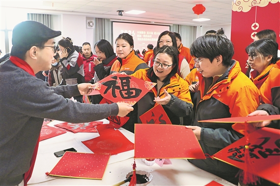 由江蘇省總工會與江蘇省文聯(lián)聯(lián)合主辦的2026年“萬福迎春 送萬福 進(jìn)萬家 祝福一線勞動(dòng)者”書法公益活動(dòng)啟動(dòng)以來,江蘇13個(gè)城市積極響應(yīng),為一線勞動(dòng)者傳遞組織溫暖、送上新春祝福。 本報(bào)記者 劉金夢 攝