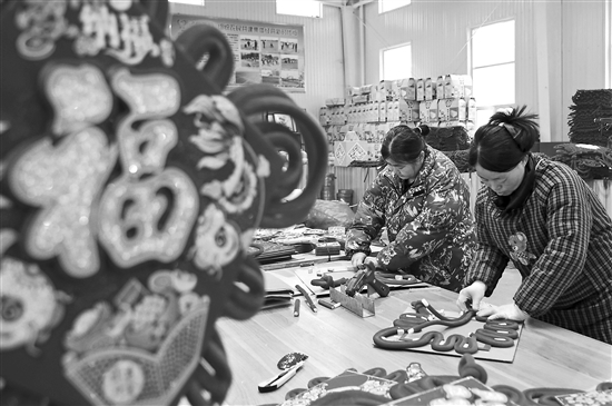 臨近春節(jié),位于山東省濱州市博興縣龐家鎮(zhèn)的振興鄉(xiāng)村生態(tài)農(nóng)業(yè)專業(yè)合作社聯(lián)合社組織當?shù)夭糠洲r(nóng)民,在經(jīng)過統(tǒng)一編織技術(shù)培訓后上崗,趕制象征團圓吉祥的中國結(jié),供應春節(jié)市場,一派忙碌景象。