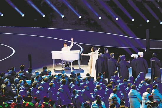 當(dāng)?shù)貢r(shí)間2月6日晚,中國(guó)鋼琴家郎朗在第二十五屆冬季奧林匹克運(yùn)動(dòng)會(huì)開幕式上演奏。本報(bào)特派記者 吳凡 攝