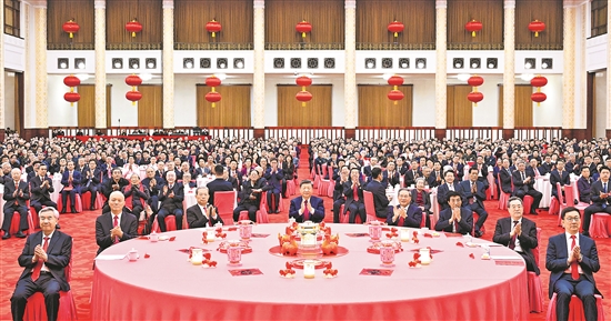 人民大會(huì)堂宴會(huì)廳燈光璀璨、喜氣洋洋,各界人士2000多人歡聚一堂、共迎佳節(jié),現(xiàn)場(chǎng)洋溢著歡樂(lè)祥和的節(jié)日氣氛。