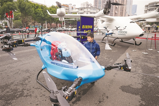 2月24日,小朋友在現(xiàn)場觀看展出的eVTOL航空器。