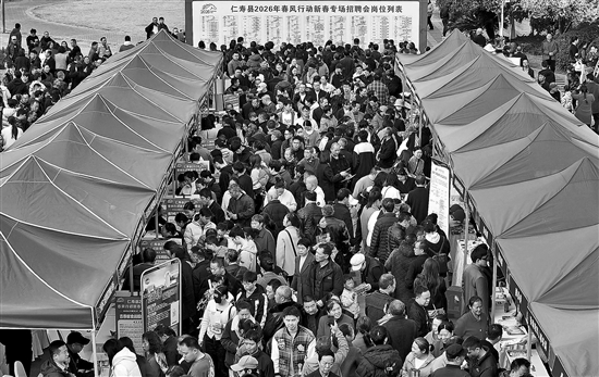 這是2月25日在四川省眉山市仁壽縣拍攝的2026年春風(fēng)行動(dòng)新春專場(chǎng)招聘會(huì)(無(wú)人機(jī)照片)。
