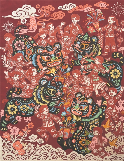春辰舞獅喜盈門(農(nóng)民畫) 劉曉妍