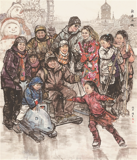 歡樂冰城(國畫) 田雅君 張?zhí)镉碇?/p>
