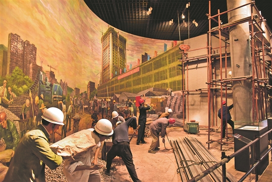 深圳博物館內(nèi)展示的國貿(mào)大廈建設(shè)場景。視覺中國供圖