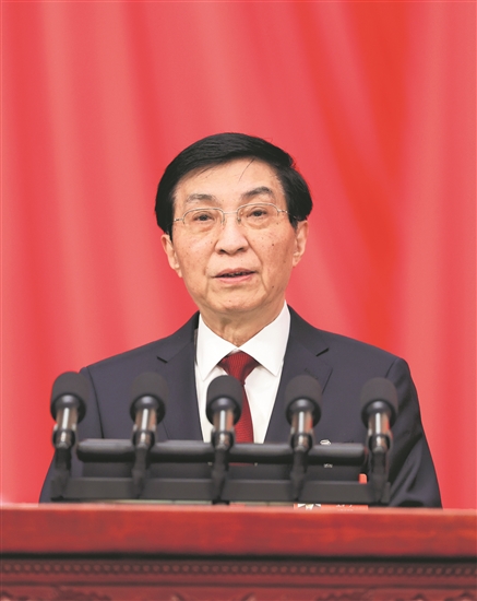 王滬寧代表政協(xié)第十四屆全國(guó)委員會(huì)常務(wù)委員會(huì),向大會(huì)報(bào)告工作。