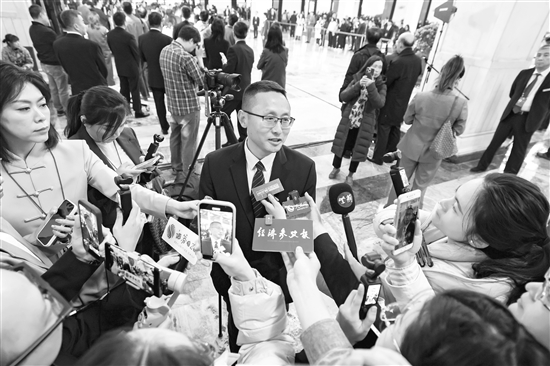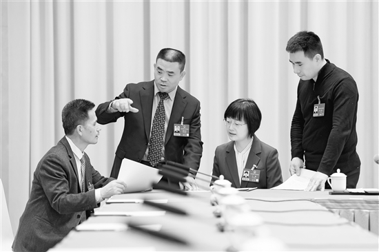 兩會期間,周培、譚雙劍、王卿、顧博(從左至右)4位代表在河北代表團(tuán)駐地交流著共同關(guān)切:面對技術(shù)變革,必須健全培訓(xùn)體系、開展勞動競賽,把工人的創(chuàng)新潛能釋放出來。