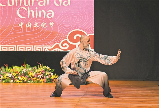 近日,中國駐巴西累西腓總領(lǐng)館聯(lián)合巴西東北部帕拉伊巴州政府、帕拉伊巴聯(lián)邦大學(xué)等在帕州文化宮舉辦第五屆帕州中國文化節(jié)。在為期兩天的活動中,數(shù)十個文化展臺分時段推出書法、武術(shù)、剪紙、考古等多項中國文化體驗課程。圖為近日,演員在第五屆帕州中國文化節(jié)開幕式上表演。新華社記者 周永穗 攝