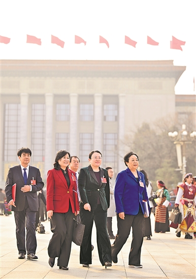 3月12日,全國人大代表們滿懷信心走出人民大會堂。新華社記者 岳月偉 攝