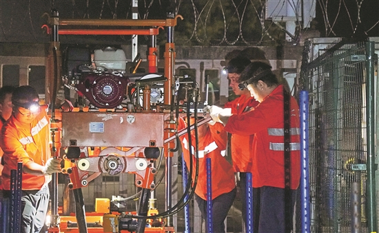 春運(yùn)期間,正值鋼軌防斷期,國(guó)鐵南昌局龍巖工務(wù)段探傷工在鐵山洋站操作鋼軌探傷儀,細(xì)致排查站場(chǎng)設(shè)備隱患,用專業(yè)與堅(jiān)守保障來往列車安全平穩(wěn)運(yùn)行。