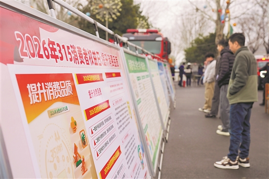 3月15日,人們?cè)诤幽鲜∏哧柺小?·15”國(guó)際消費(fèi)者權(quán)益日主題宣傳現(xiàn)場(chǎng)觀看展板。