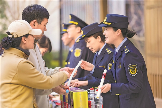 3月12日,山東省青島市李滄區(qū)市場(chǎng)監(jiān)督管理局工作人員走進(jìn)浮山路街道金液泉路社區(qū),開(kāi)展“提升消費(fèi)品質(zhì)”主題宣傳進(jìn)社區(qū)活動(dòng)。本報(bào)通訊員 張鷹 攝