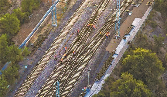 近日,國(guó)能新朔鐵路大準(zhǔn)公司榮獲“全國(guó)鐵路系統(tǒng)先進(jìn)集體”稱(chēng)號(hào)。據(jù)介紹,近年來(lái),該公司實(shí)現(xiàn)運(yùn)量跨越式增長(zhǎng),數(shù)智化改革提效降本成果豐碩。圖為國(guó)能新朔鐵路大準(zhǔn)公司工作人員進(jìn)行道岔檢修作業(yè)。本報(bào)通訊員 何軍 攝