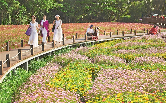 3月17日,游客在瓊海博鰲南強(qiáng)村踏青賞花。