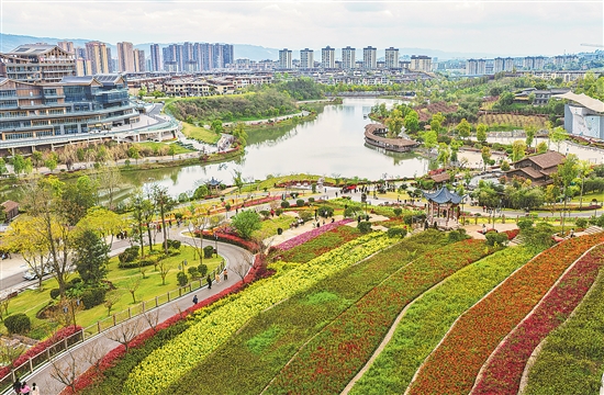 3月18日,游客在重慶市璧山區(qū)古道灣公園游玩(無人機(jī)照片)。近年來,璧山區(qū)持續(xù)扮靚城市空間,讓市民與游客盡享生態(tài)與人文交融之美。