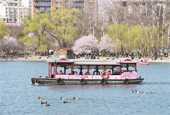 春和景明,北京玉淵潭公園春花爭艷,春意盎然,吸引眾多游客前來踏青賞花。