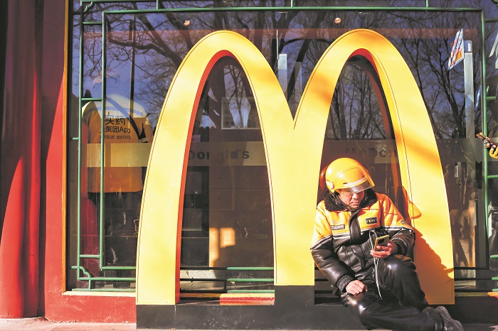 1月21日,北京一快餐店外,外賣騎手在等餐過程中靠窗休息。本報記者 楊登峰 攝
