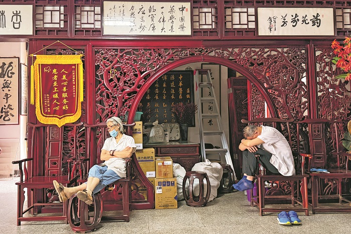 2025年9月21日,江蘇南京的一家中醫(yī)館內(nèi),工作人員在午休。本報記者 劉金夢 攝