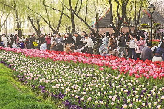 近年來,江蘇多地以花為媒,抓住春日賞花的“情緒消費(fèi)”熱點(diǎn),通過科學(xué)種植讓花期接力,通過多業(yè)態(tài)聯(lián)動(dòng)拓展春日體驗(yàn),讓賞花經(jīng)濟(jì)持續(xù)升溫。本報(bào)記者 劉金夢(mèng) 攝