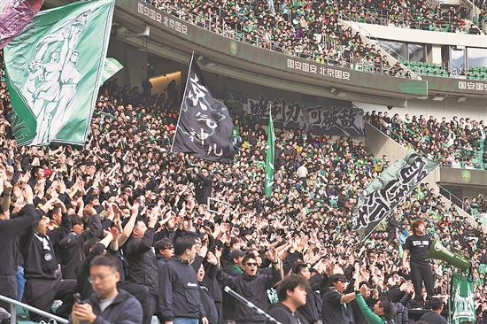 圖為北京國安隊球迷為球員吶喊助威。