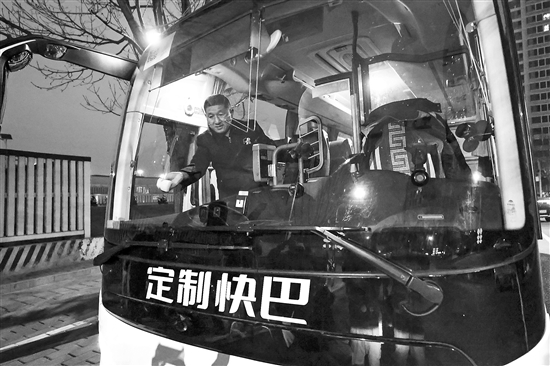 3月16日清晨,定制快巴在北京草橋發(fā)車前,司機擦拭前擋玻璃。當日起,為進一步落實京津冀協(xié)同發(fā)展戰(zhàn)略,織密京雄兩地交通網(wǎng)絡(luò),經(jīng)過一年多試運營,京津冀定制快巴北京至雄安新區(qū)通勤線路正式開通運營。
