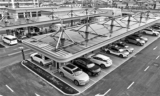 3月22日,江蘇省連云港市海州區(qū)交控綠能超充站,新能源汽車在充電。