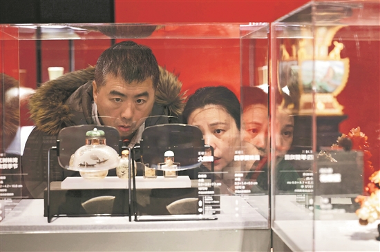 3月26日,北京中國(guó)美術(shù)館內(nèi),“大匠之道——中國(guó)工藝美術(shù)大師邀請(qǐng)展”正持續(xù)展出,觀眾駐足欣賞精美展品。