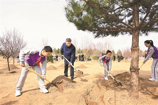 在京中共中央政治局委員、中央書記處書記、國務委員等參加植樹活動。