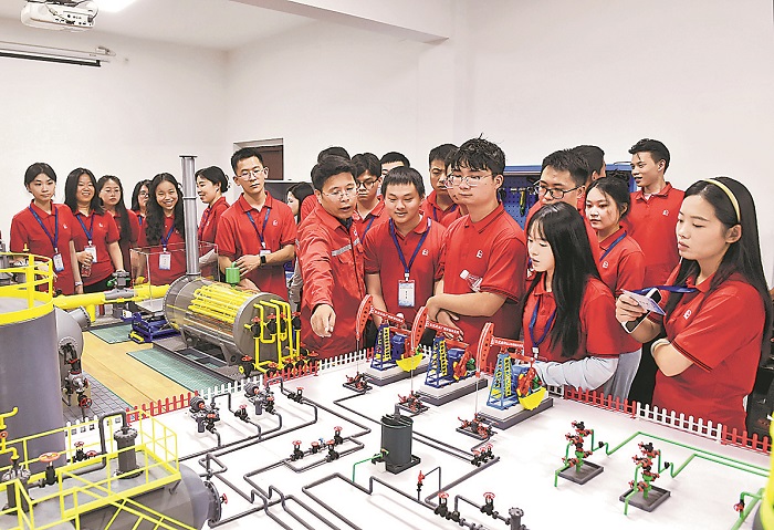 近年來(lái),江漢油田積極打造省級(jí)工匠學(xué)院建設(shè)點(diǎn),加強(qiáng)培訓(xùn)項(xiàng)目教育模式革新?!霸诠そ硨W(xué)院,我們能上手操作VR模擬的實(shí)操演練,還能得到技術(shù)能手一對(duì)一指導(dǎo)?!比涨埃毠づ嘤?xùn)中心青年職工楊國(guó)亮參加完實(shí)訓(xùn)后感慨道。黃慧 冉海燕 攝