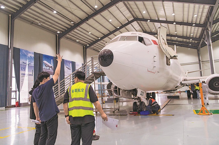 3月30日,學員在浙江省金華職業(yè)技術大學航空維修培訓中心練習“飛機拜拜員”的工作流程。該校飛機機電設備維修專業(yè)自2020年開設以來,學生在校即可參加民用航空器維修人員執(zhí)照考證,拿下航空維修行業(yè)的“敲門磚”,多家航空公司已提前下單,要求定向培養(yǎng)。本報通訊員 胡肖飛 攝