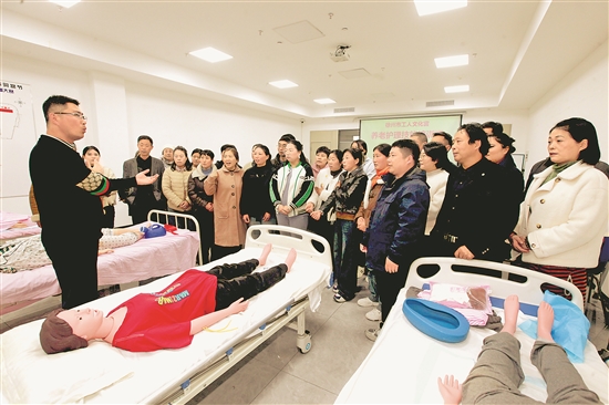 近日,專業(yè)老師在江蘇省徐州市工人文化宮給學(xué)員傳授養(yǎng)老護(hù)理技能。