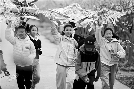 4月4日,江蘇南通海安市大公鎮(zhèn)于壩村,千畝梨花盛放。大公鎮(zhèn)中心小學的學生和家長漫步梨園,放風箏、玩滑板,在春日花海中嬉戲游玩,樂享愜意春假。