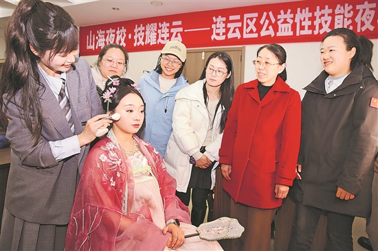 4月7日至8日,江蘇省連云港市連云區(qū)總工會(huì)與連云區(qū)人社局聯(lián)合開辦“山海夜校 技耀連云”免費(fèi)公益職業(yè)技能夜校,開設(shè)短視頻剪輯等課程,吸引169名轄區(qū)群眾等報(bào)名參與。圖為學(xué)員在“漢服妝造”課上學(xué)習(xí)化妝技巧。本報(bào)通訊員 朱華南 攝