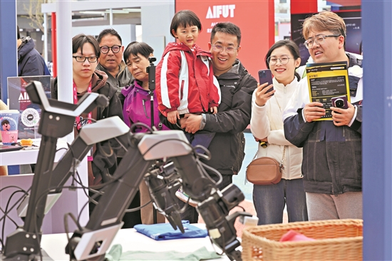 4月8日,AI FUTURE北京亦莊AI未來大會在北京亦莊?北京智慧電競賽事中心啟幕?;顒蝇F(xiàn)場,不少參觀者駐足觀看AI疊衣服等智能演示,感受人工智能的便捷與趣味。