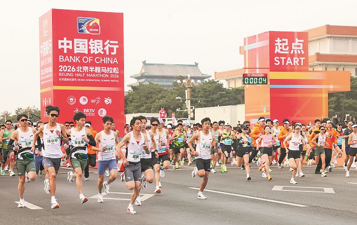 本報(bào)訊(記者朱亞男)4月12日,2026北京半程馬拉松賽鳴槍起跑,2.2萬(wàn)名跑者從天安門出發(fā),沿北京中軸線一路向北,最終抵達(dá)奧林匹克公園中心區(qū)景觀大道。