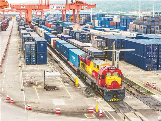 4月15日,一列滿載“重慶造”新能源汽車的中老跨境班列在重慶團(tuán)結(jié)村站等待發(fā)車。