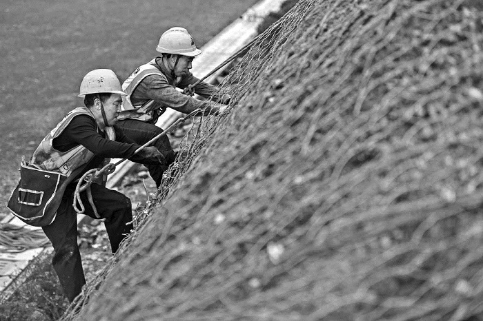 “蜘蛛人”織網(wǎng)“鎖”邊坡