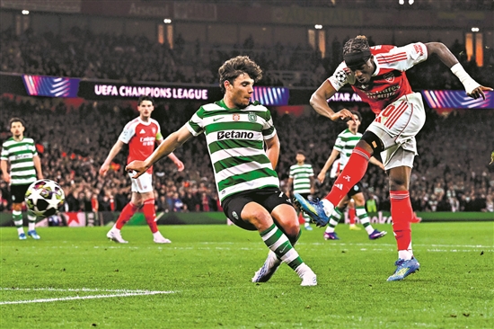 當(dāng)?shù)貢r間4月15日,在倫敦進(jìn)行的2025-2026賽季歐洲足球冠軍聯(lián)賽1/4決賽次回合比賽中,阿森納隊(duì)主場0比0戰(zhàn)平葡萄牙體育隊(duì)。最終阿森納隊(duì)總比分1比0晉級半決賽。另外3支晉級半決賽的球隊(duì)為馬德里競技、拜仁慕尼黑和巴黎圣日耳曼。圖為阿森納隊(duì)球員馬杜埃凱(右)在比賽中射門。